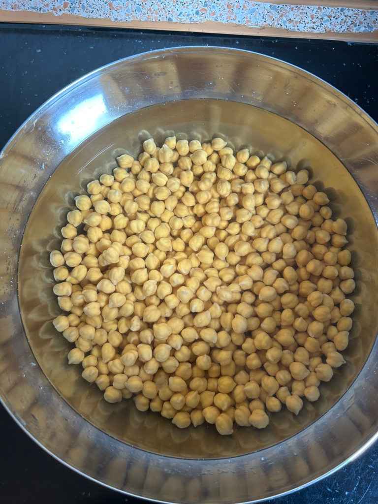 - I recommend to use dried chickpeas, as they provide a better texture and flavour. So soak them overnight and cook them until tender.