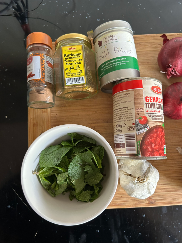 - Add the ground seasoning (cumin, mint, cinnamon, coriander and chilli), mix and let it cook for another 5 minutes.