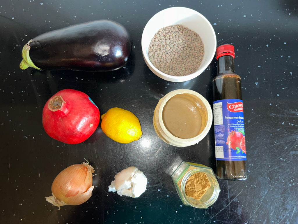 Originating from Palestine, this hearty lentil-eggplant stew has a sweet and tangy note coming from pomegranate.