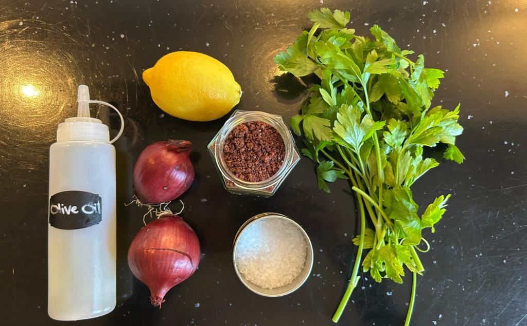 This Turkish salad, combines thinly sliced onions, with bright and fresh flavours like sumac, lemon and parsley. It's the perfect condiment for BBQs or sandwiches.